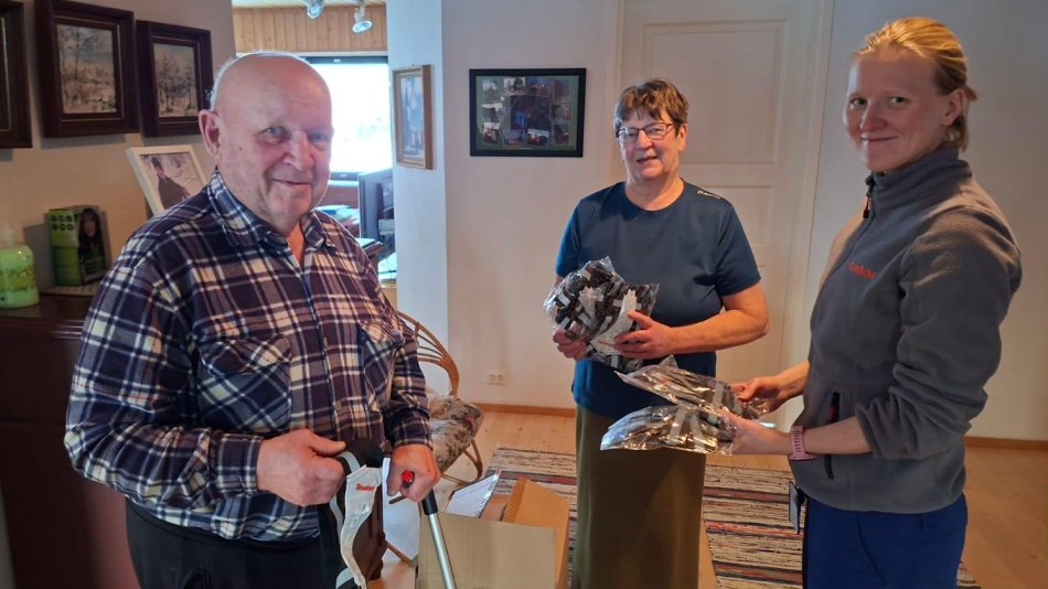 Terrafame lahjoitti Tuhkakylän kyläyhdistykselle led-valoilla varustettuja heijastinliivejä. Turvallisuuspäällikkö Eeva Nurmi (kuvassa oikealla) luovutti heijastinliivit kyläyhdistyksen puheenjohtajalle Alpo Partaselle (vasemmalla).